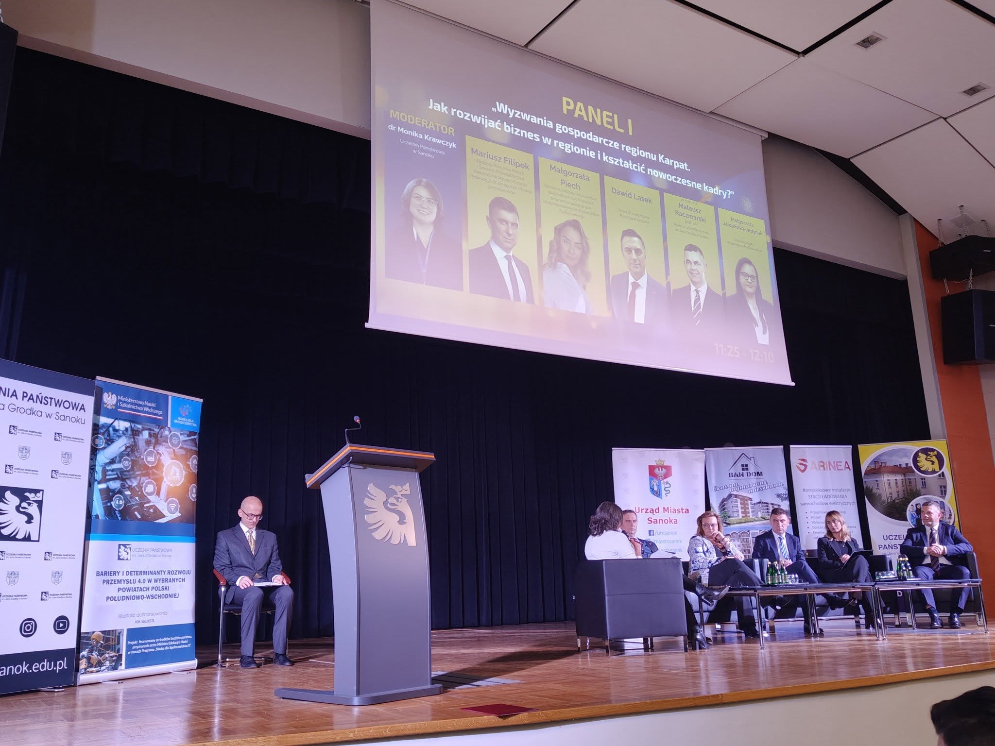W dniu 14 listopada 2025 r. Pełnomocnik ds. Informacji i Analiz Transgranicznych, mgr Dawid Lasek, wziął udział w debacie eksperckiej zorganizowanej w Sanoku w ramach Forum Ekonomicznego pn. „Razem dla rozwoju – nauka, biznes, administracja”. Wydarzenie zgromadziło przedstawicieli środowisk naukowych, administracji publicznej oraz sektora gospodarczego, stanowiąc przestrzeń do wymiany doświadczeń i wypracowania wspólnych kierunków działań na rzecz rozwoju regionalnego.